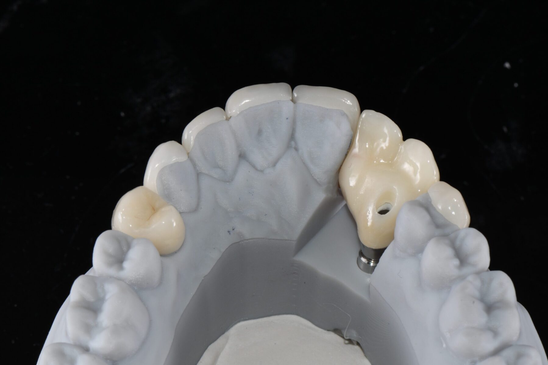 Implant crowns and bridges are custom-made restorations that replace the visible portion of missing tooth or teeth. They are crafted to match the color, shape, and size of your natural teeth. Implant restorations may be affixed directly to an implant or attached to an abutment, which is a coping that engages into the implant.
