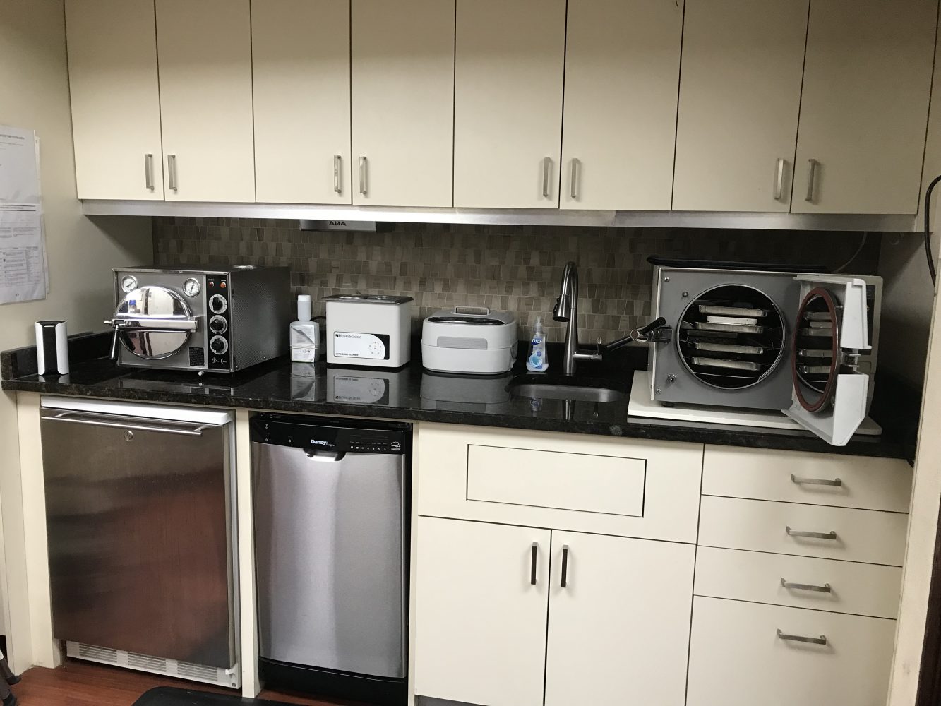 All instruments, rotary instruments (dental handpieces, drills and burrs) and equipment used in your care are sterilized between patients with heat, steam and pressure to ensure all possible microbes are not viable.